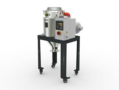 Heißluft-Recycler (HAR), Absaugkasten (SBU), Trichtermagnet(MR), „Europäischer Typ“ Bodenstativ (FSU) und Vorratsbehälter (MST)