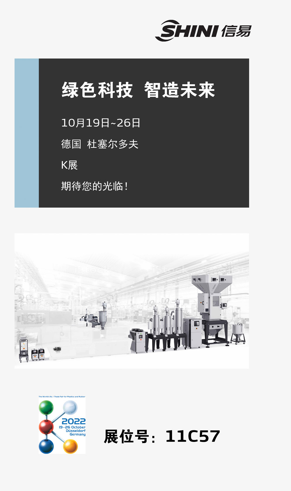 本届K展上,信易集团将携众多集创新性与可靠性的塑胶辅机装备,以智能化技术为核心亮相K2022,展位号11C57。产品将主要聚焦于智能、自动、环保、循环、低碳等趋势特征,展出除湿干燥系列、供料输送系列、混合抖料系统、冷热交换系列、粉碎回收系列等完整的辅机装备产品及解决方案,满足各种不同的用户需求。