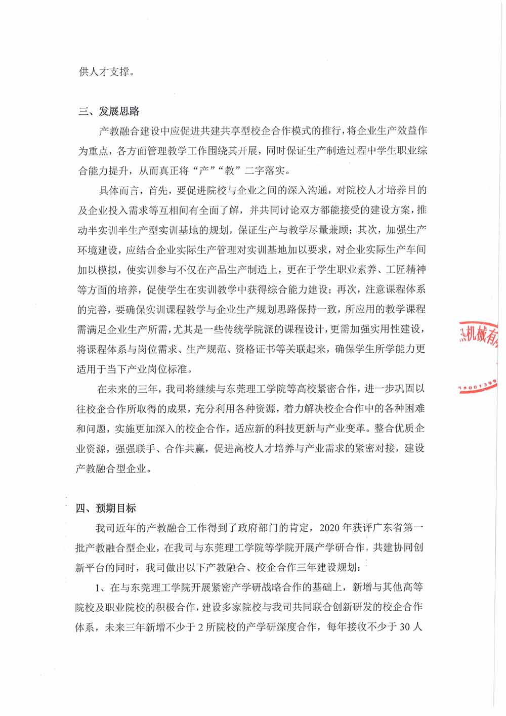 随着创新驱动发展战略的深入实施、对于教育、人才培养也有着新要求。近年来,我司积极与各高校、职业院校、科研院所紧密合作,一方面,利用高科技人才、科学技术优势进行产学研合作,与东莞理工学院开展深度合作,建立了大学生校外实训基地,另一方面,利用我司生产研发条件,吸引优质职业院校毕业生到我司就业,我司也荣获“第一批东莞市职业院校定点实习实训基地”荣誉。为进一步发展企业技术优势与管理作用,深耕校企合作模式,联合培养创新型人才,特定制本三年规划。