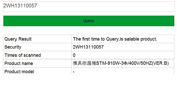 2. Scan the QR code, enter the query interface and input the product’s series number (as below):