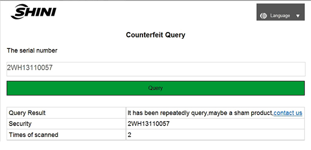 For counterfeit products of our company existed on market these days, we found the fake products may contain potential danger due to the poor quality. In order to protect the rights and interests of our agents and customers, guard our brand equity, Shini is going to launch the counterfeit query online system officially. On the initial date of October 15th (refer to the issuing date), all the agents and customers please search on the system for counterfeit query confirmation.