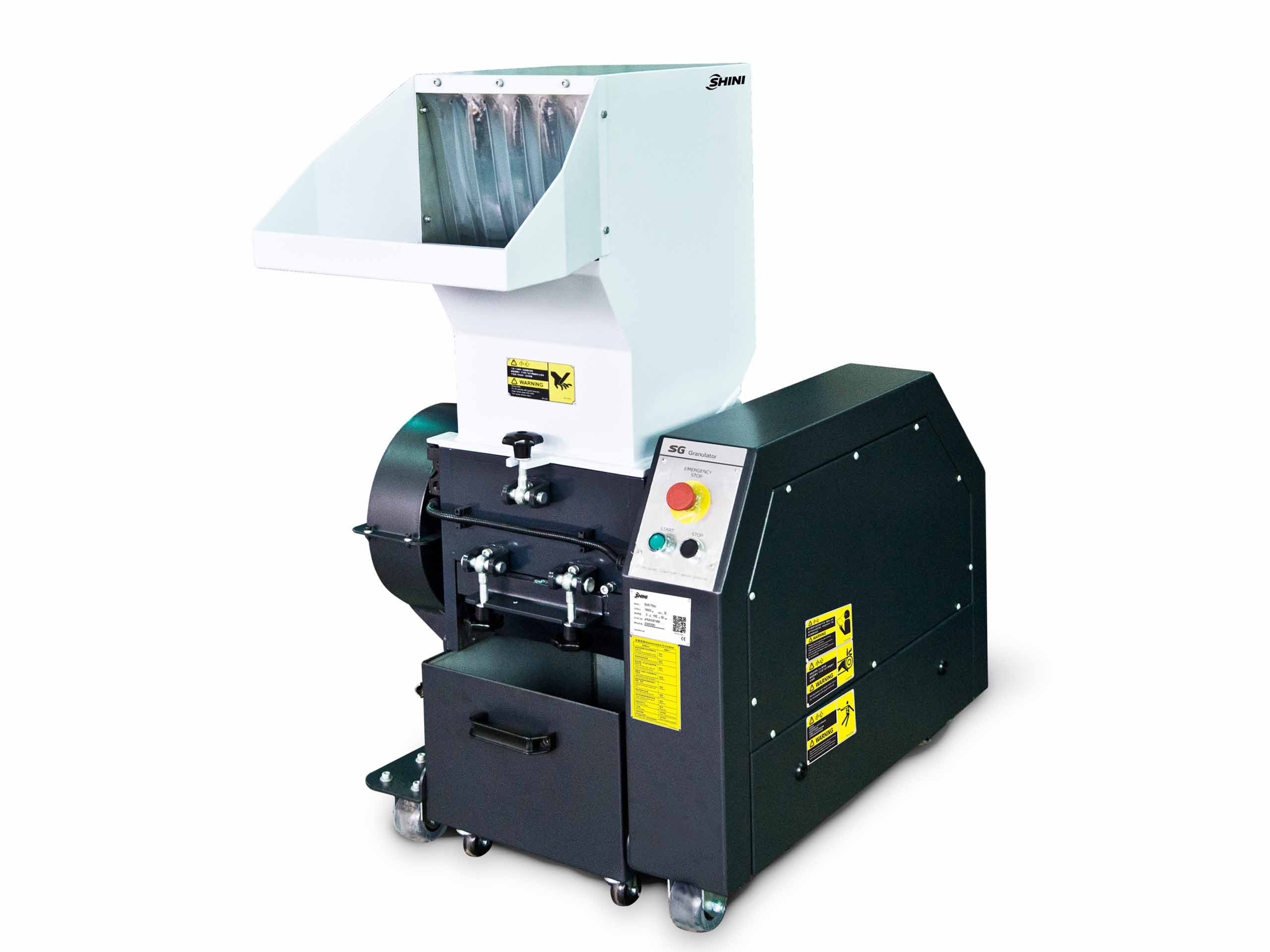 The granulators are applicable to granulate various kinds of plastic materials from injection molding, blow molding or wasted materials. To avoid plastic from sticking to the blades, all materials should be crushed at normal temperature.