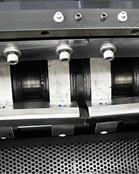 • Rotating cutters adopt V-type cutting technology which can send the feeding material into the center of rotating cutters so to prevent the material from adhering onto the inner side of the cutting chamber while enhancing its wearability.