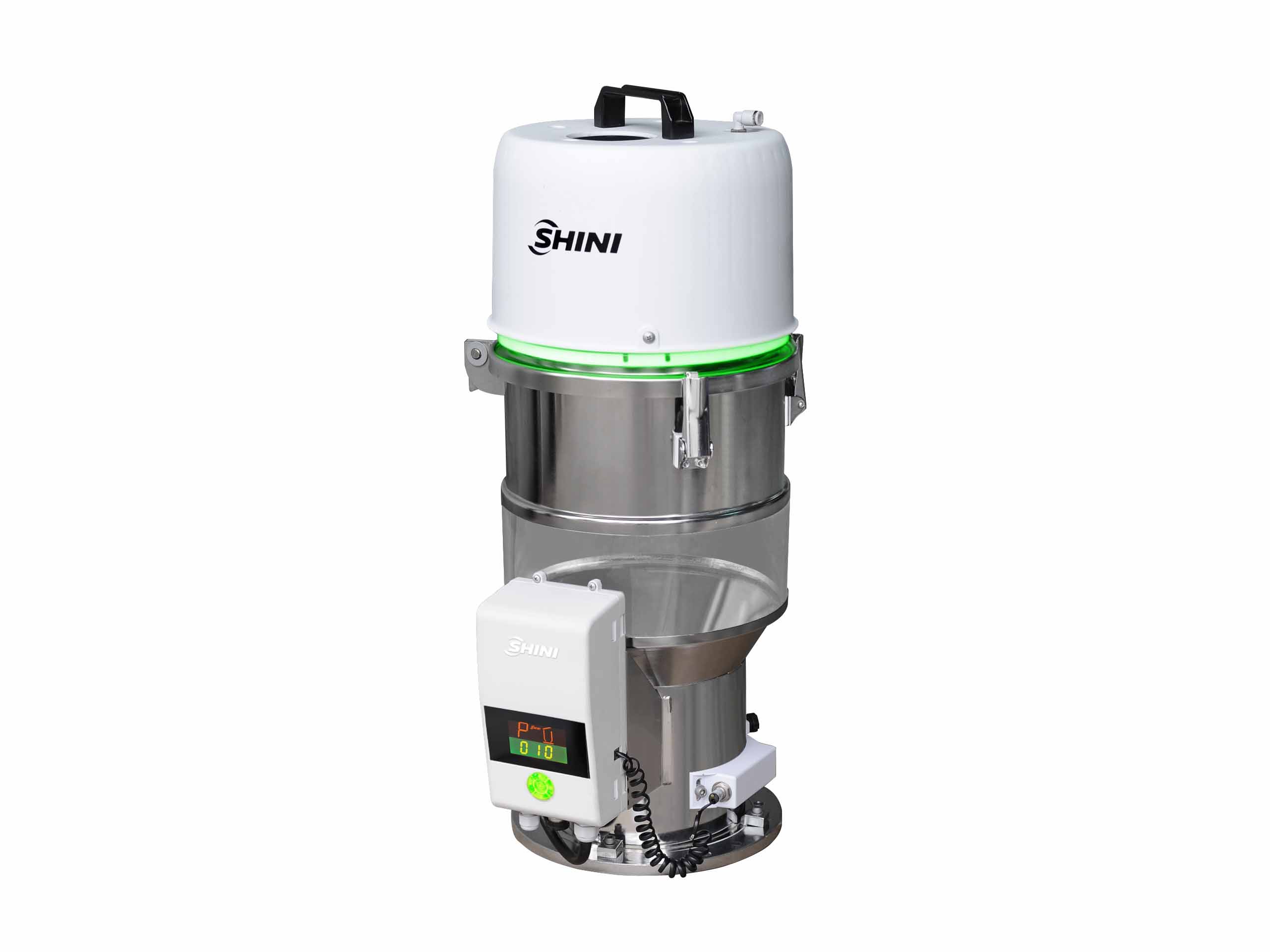 SAL-U series self-contained hopper loaders are Euro design with stainless steel hopper to avoid material contamination. In addition, it has an attractive appearance, a sound-proof motor cover to reduce noise level and a top handle to enable convenient movement. Also the remote operation has been realized by using a detachable control panel.
