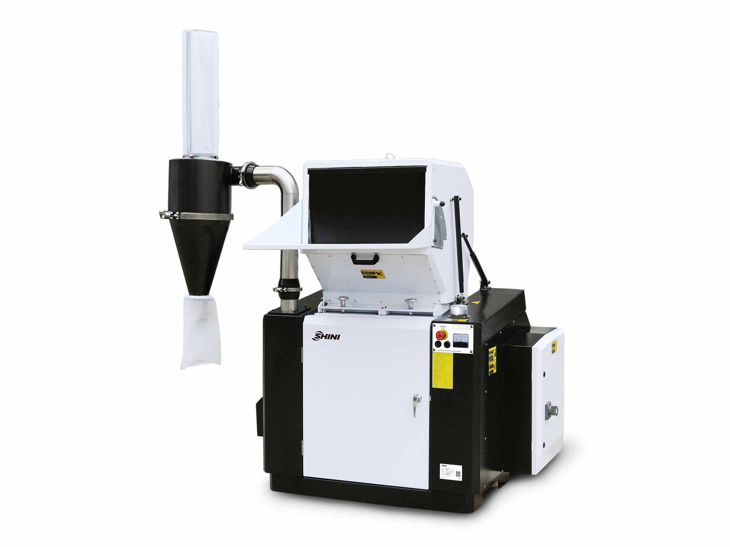 - Cyclone dust separator can effectively remove the air from regrind and facilitates the material collecting.