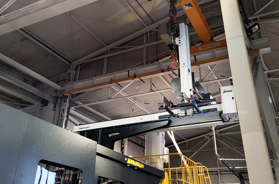 Company Plastimex, producer of PVC, PP PE pipes purchased Borche machine with Shini auxiliary equipments. Project was very difficult mainly because of lack of space for the machine and also very specific placement of it. IMM was widened due to wide mould cores. Another challenge was to select appropriate ST3 robot that needed to be chosen from the measurements coming out of the project.