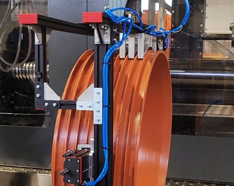 Due to the weight of the detail, gripper was designed from the scratch. X axis release was used with a success what resulted with cooperation of the machine ejector with the X axis movement. This allowed to stabilization and firm grip of the detail.