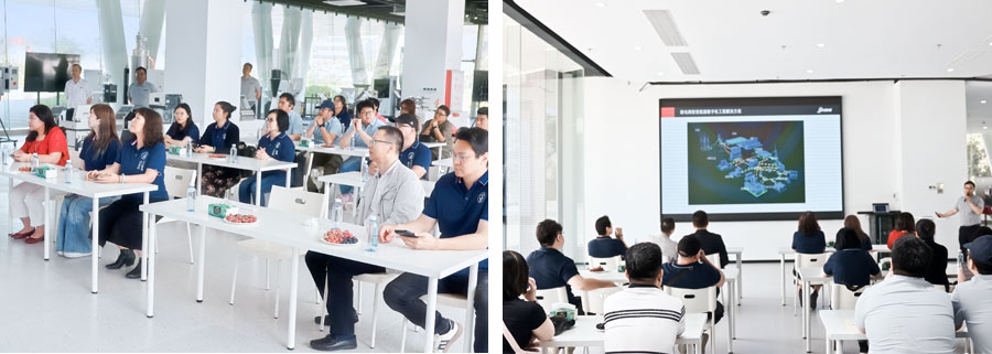 During the visit to the production workshop, all the guests experienced Shini's latest smart manufacturing technology, including a flexible production line, sheet metal flexible production line, large five-sided machining center, automatic production line, smart baking finish production line, smart logistics, 24hr logistics concept, stereoscopic warehouse, assembly process and comprehensive implementation of plant digital management experience, etc. They exchanged opinions on how to introduce automatic equipment and information management systems. Moreover, Shini technician also showed how to promote green manufacturing, improve photovoltaic utilization, reduce energy consumption and environmental pollution, and practice sustainable development concepts, which the guests highly praised.
