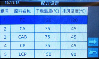 为了让用户可以更方便的操作设备,MDD控制器内置原料配方功能,配方内预置28种常用原料及其通用干燥参数,用户可根据自身需要干燥的材料直接从配方中选择,提升作业效率。MDD还可选装露点检测来解锁实时检测露点功能和露点可控功能,露点可控功能可根据露点变化自动调节再生电热状态,从而减少机器能耗。