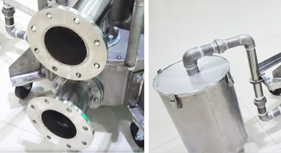 立式旋转下料阀上盖连接输送气管,从本体中间部分直接输送空气,让原料从供给装置移动到接收装置,可以实现很短的面间距离,与水平型下料阀相比省去了安装加速室的高度,在地面就可使用,免去挖地坑放置设备的工作。本体连接简易集尘器以及过滤设备搭配气力输送系统能有效减少粉尘对原料的影响。立式旋转下料阀为可移动式,机器标配脚轮方便移动,无需与其他设备装配在一起,可在管道传送范围内使用机器,不使用时可以灵活调度空间存放机器。