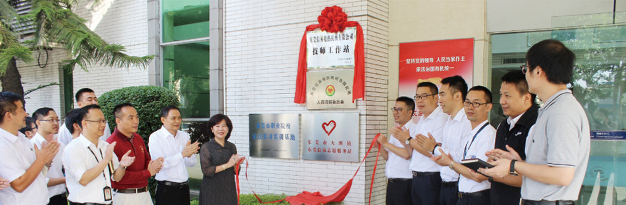 12月5日上午,東莞市人力資源分局陳軒明副局長、葉耀良主任、韓偉堅副主任、大朗鎮石廈村人力資源服務站周效強站長等政府領導與我司趙協理、易道江經理、謝仲銘副理等領導共同出席“技師工作站”揭牌儀式,並進行會談。屆時,趙協理與東莞市人力資源分局陳軒明副局長先後發表講話,會上,陳軒明副局長對信易“技師工作站”的成立表示祝賀,並為我司“技師工作站”的運行提出了許多寶貴的建議與期許。